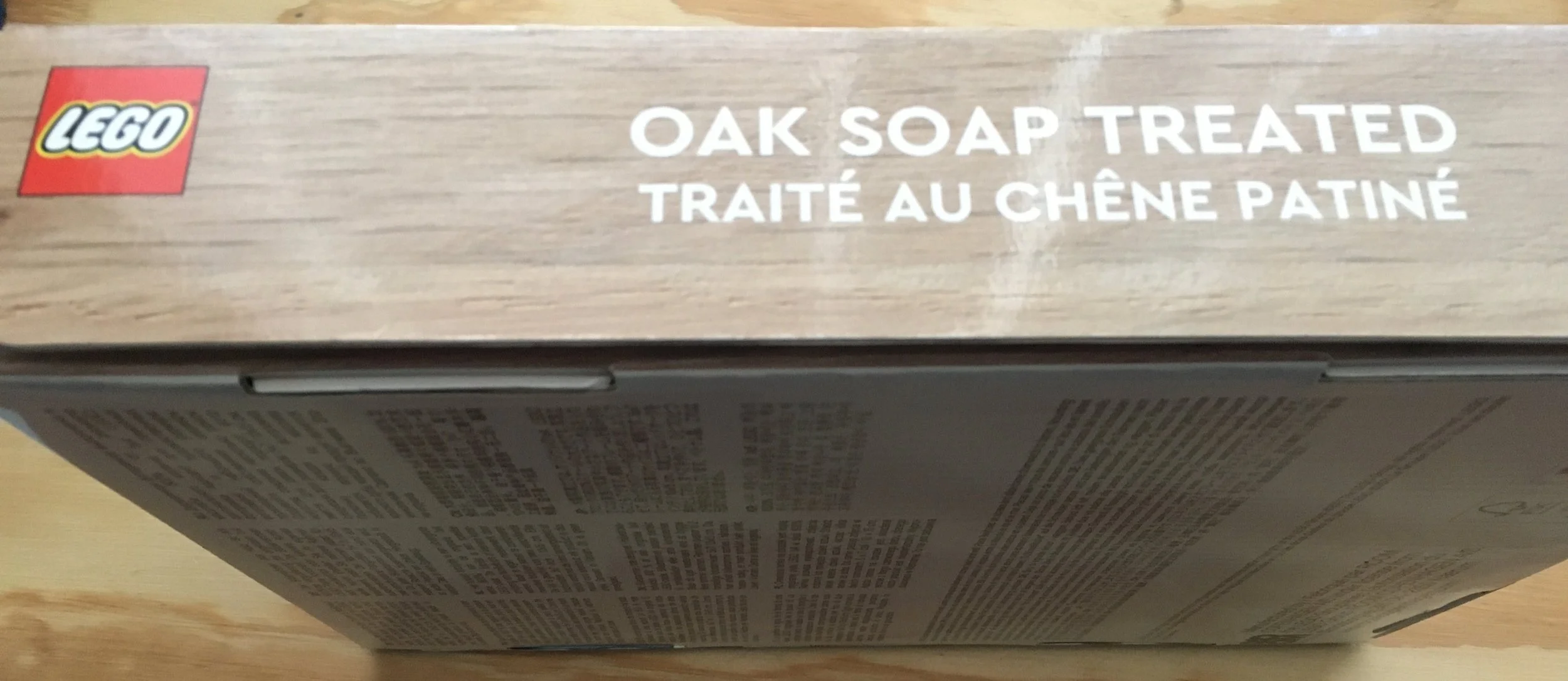 Here’s the box that arrived after I placed my order with LEGO Shop@Home. It’s consistent with the brand’s packaging. It looks professional and they highlight how you can stack these picture frames on top of each other if you want to spend a few hundred dollars on them. One of the side views notes that I purchased the “oak soap treated” version. I have no idea what oak soap is, but this frame is $10 cheaper than a darker stained frame also for sale.