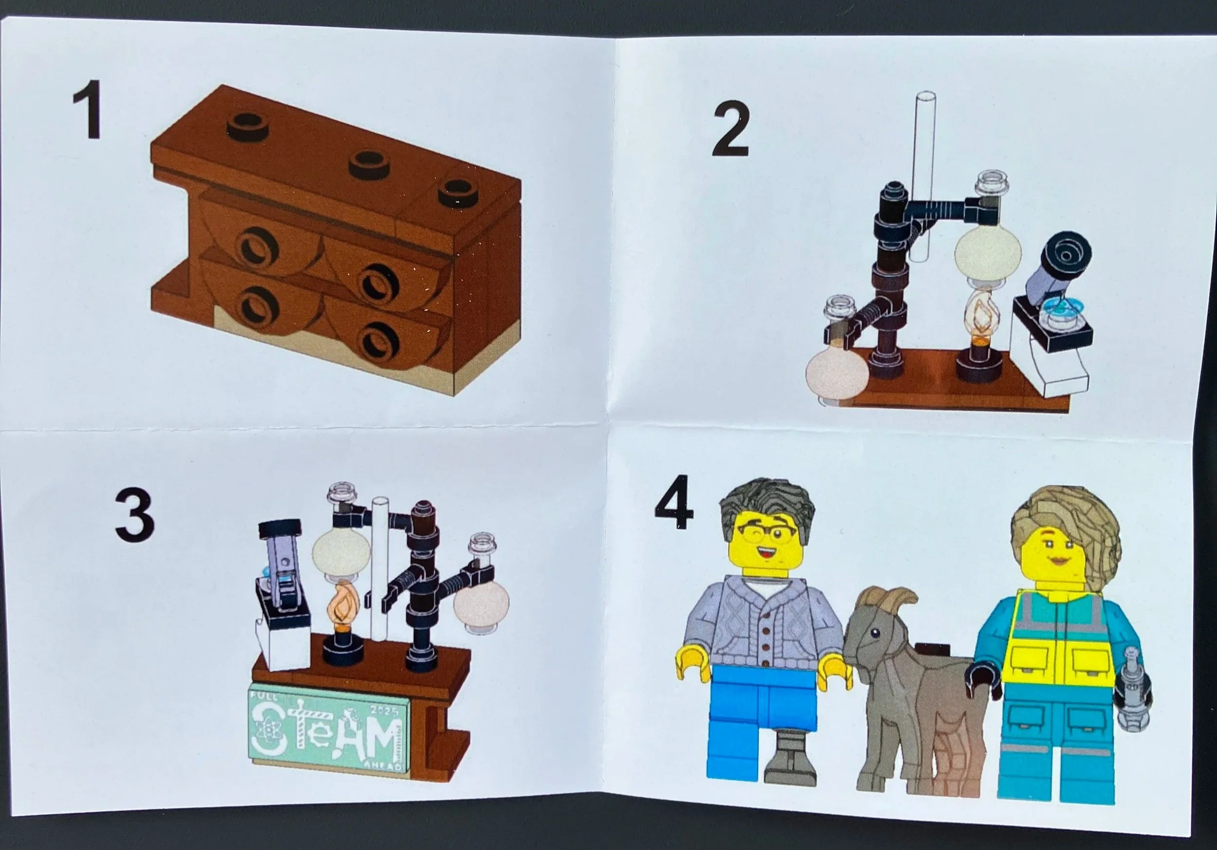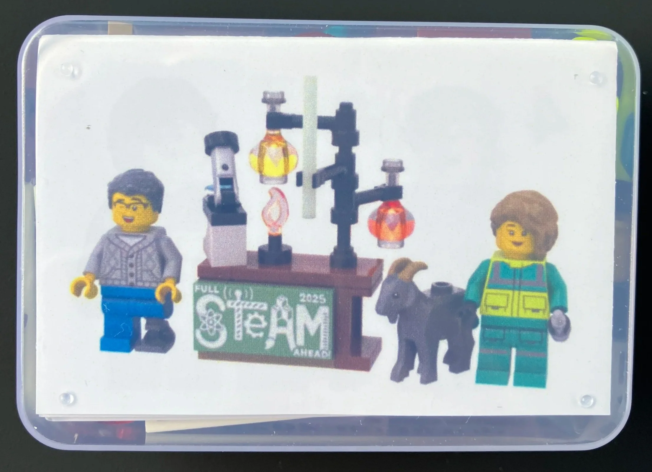 One more item to review from BrickCon 2025. The swag bag included a mini model in the theme of the convention. This one was smaller, but included two minifigures and a goat. It came in a small plastic container which was something I have not seen done before, but I like it. Here’s a picture of the container with the instructions also as a label on the inside and then some of the parts.