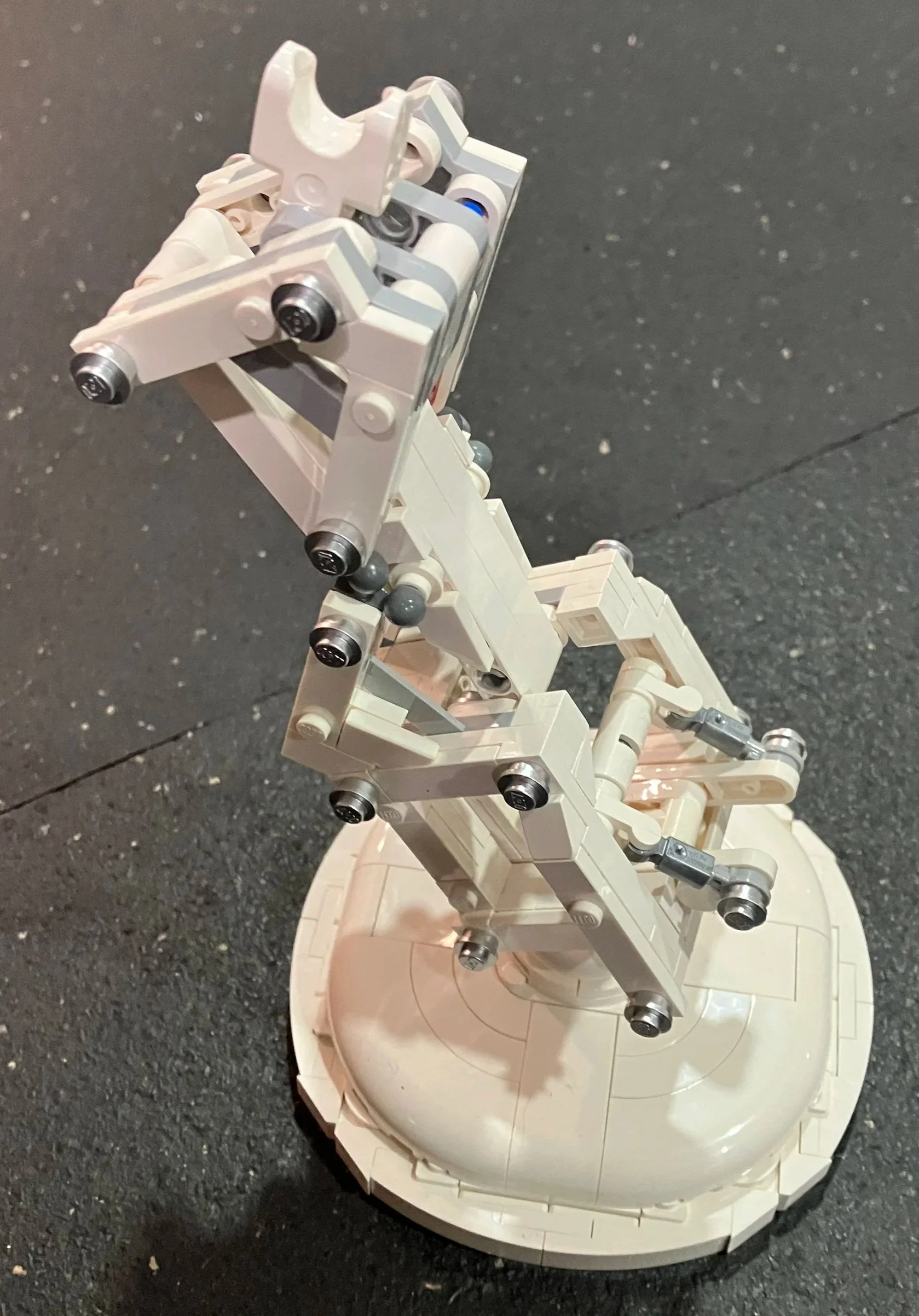 Bag three assembles the arm that holds up the lamp. The piece usage here is great to make it look like an actual adjustable arm. I like the mix of white pieces and silver round 1x1 plates as fasteners. This section of the build required paying attention to how pieces were aligned in the instructions. It’s fairly complicated despite being a relatively small build.