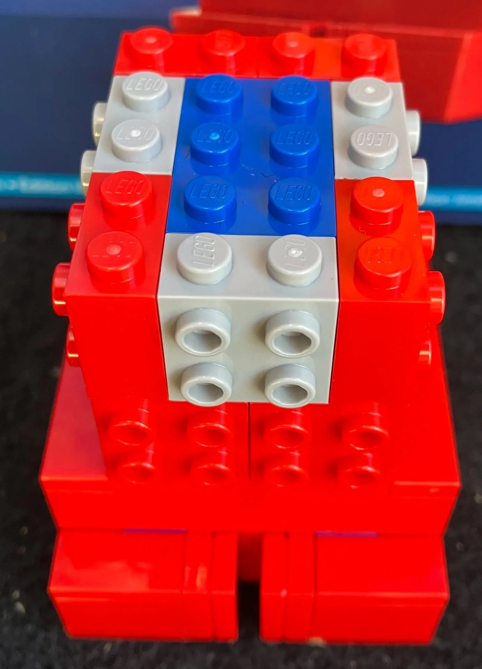 Bag two builds the torso and arms. The hands are rounded pieces so you don’t get the look of a minifigure hand with the grip. I can think of a few ways they could have done it or even flipped the pieces they used around, but we’ll take it I guess. You get a 2x4 red printed tile with a classic space logo which is awesome.