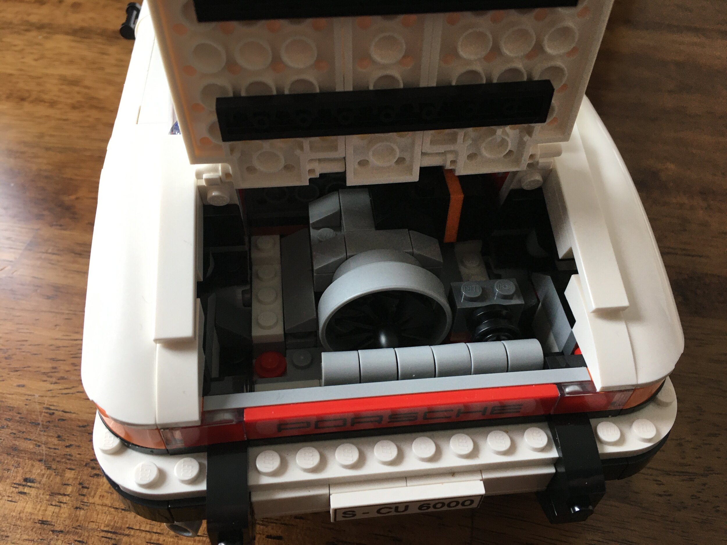 The engine compartment in the back looks different. I couldn’t tell you what the real differences are between the two vehicles so I’m not going to try and describe the brick changes using engine terms. I initially removed all of the Turbo engine components when building the Targa, but you don’t have to. So look at the instructions before you tear everything out.