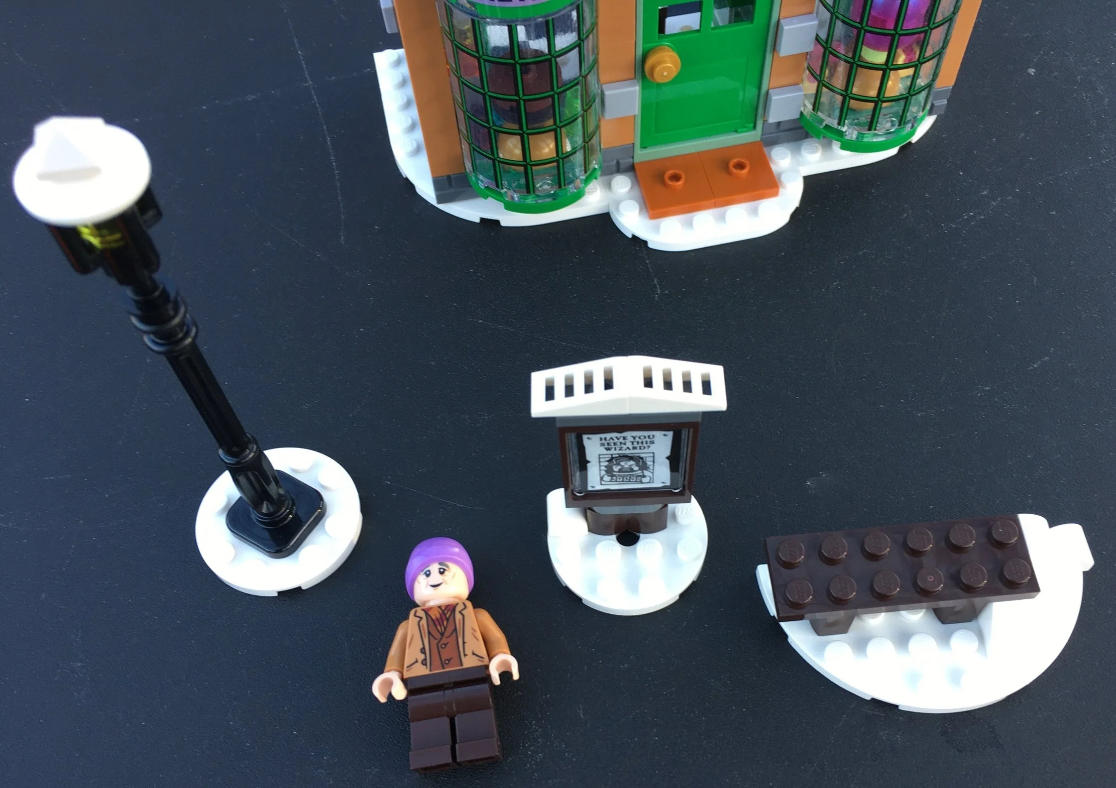 You also get the pieces to make a lamp post, a small bench, and then a wanted poster from “The Prisoner of Azkaban.”