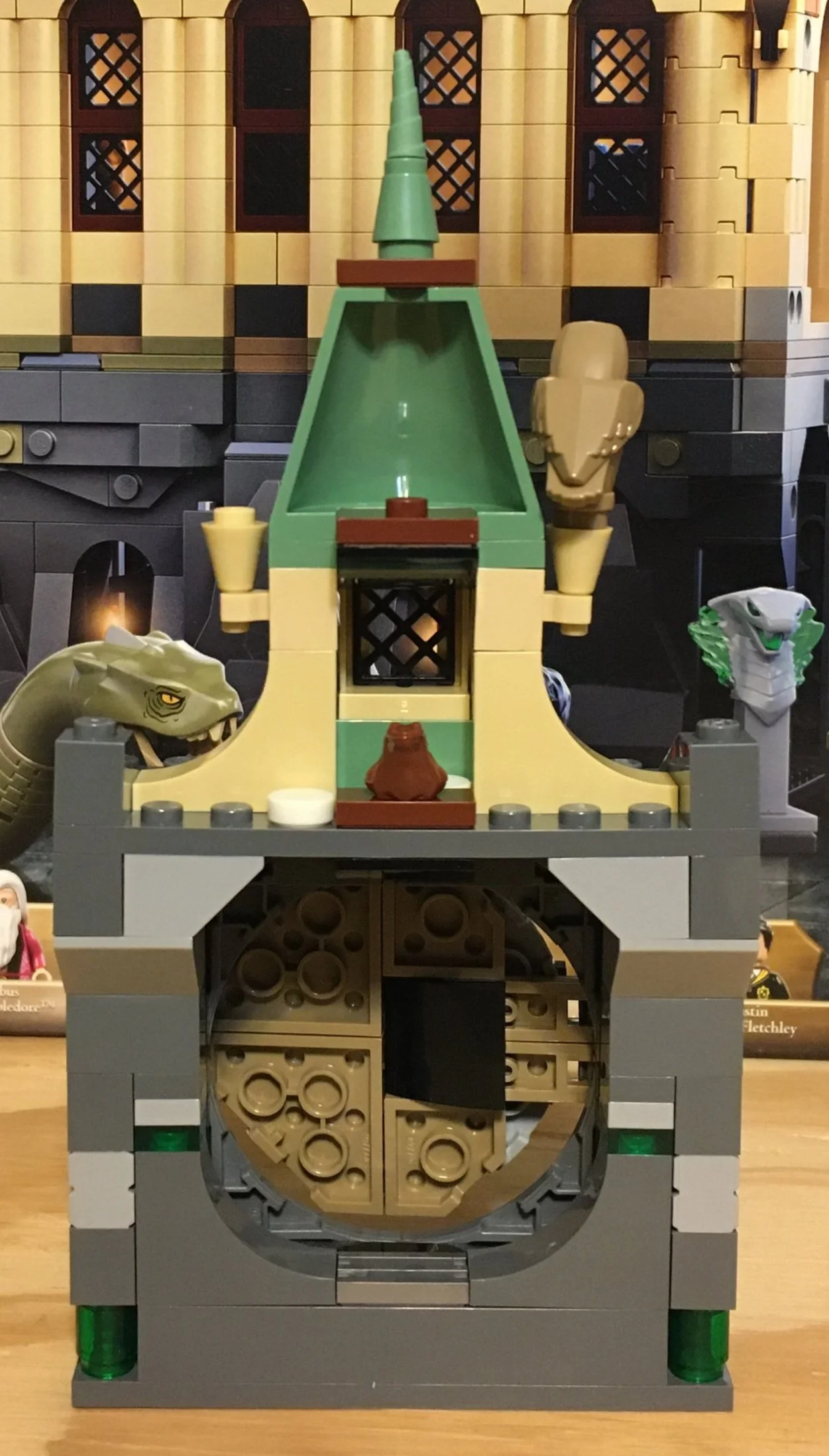 A big criticism on this side is that the entrance to the Chamber of Secrets is on the outside of the building. I the movie it is clearly somewhere underneath the castle in a cave. As it is constructed, it is just below a floor that has a roof section. If you were to update these sets, I would look to adjust the placement of the entrance to the Chamber so it is more internal to the castle.