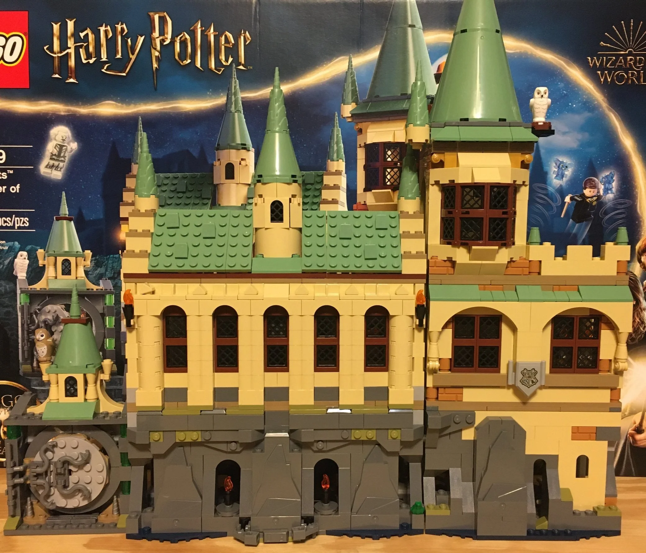 I didn’t take a separate picture of it until the end, but you add in the “Welcome to Hogwarts” letter here as well. You connect the large plates with various connector pieces in angles that work out nicely when it connects to the set. The letter is attached where Hedwig’s claws are so it looks like Hedwig is carrying the letter to you.